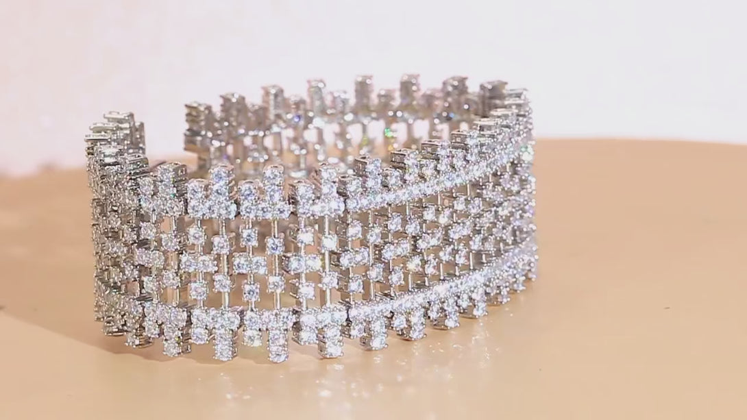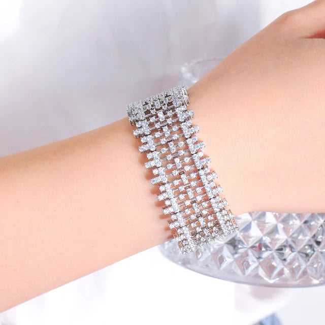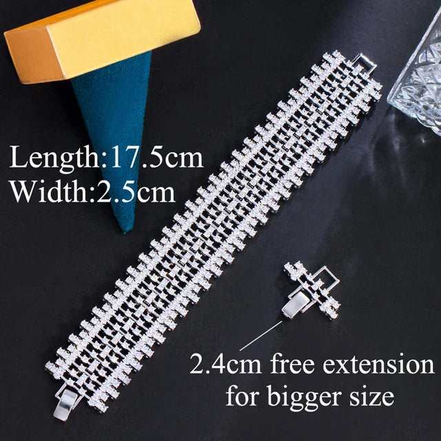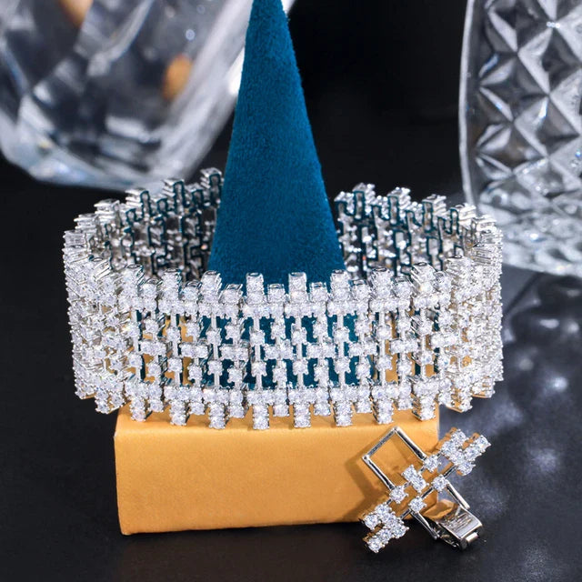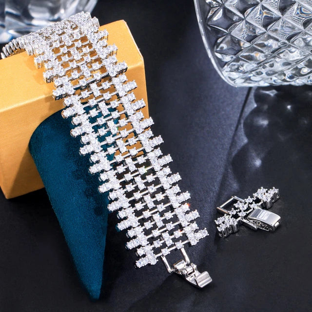 Link chain bracelet with brilliant cubic zircon. Best for parties and matching perfectly with silver jewelry.