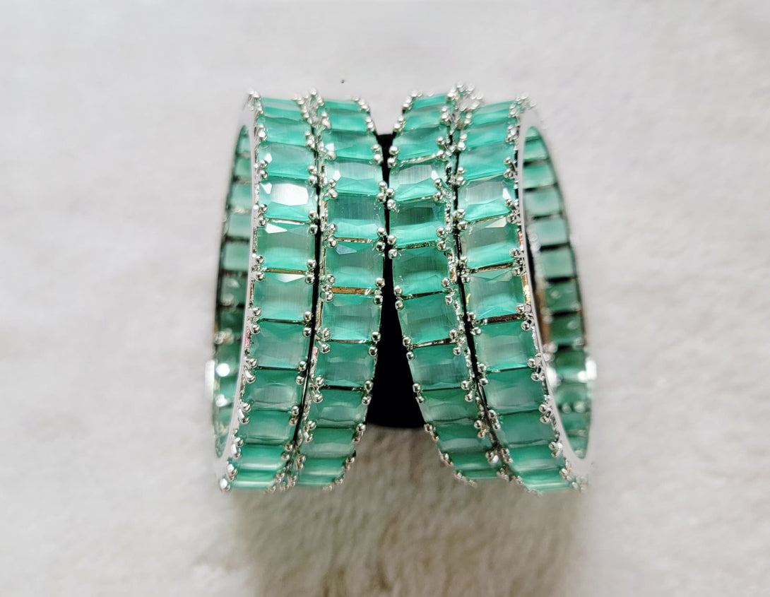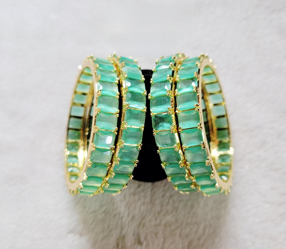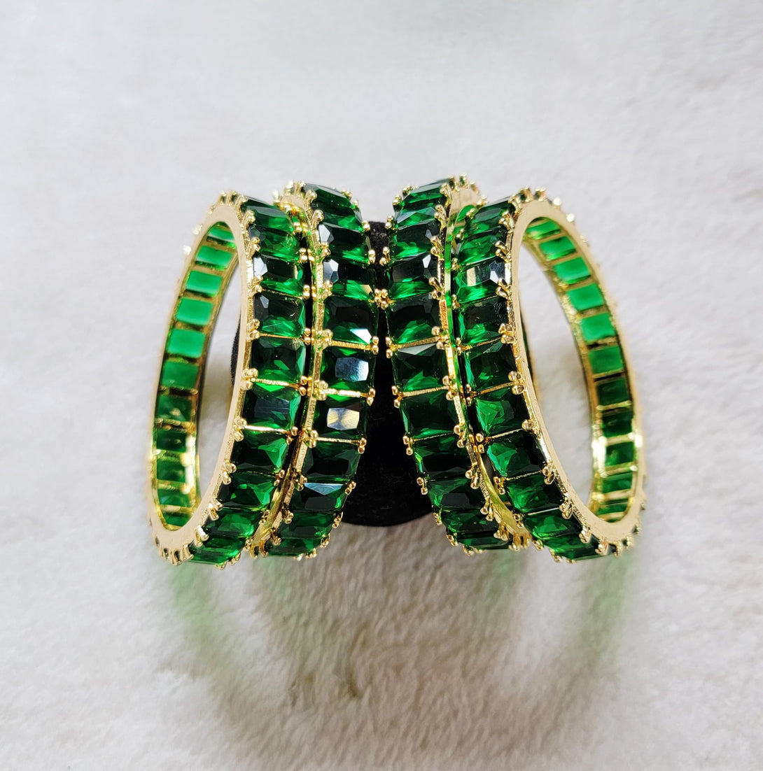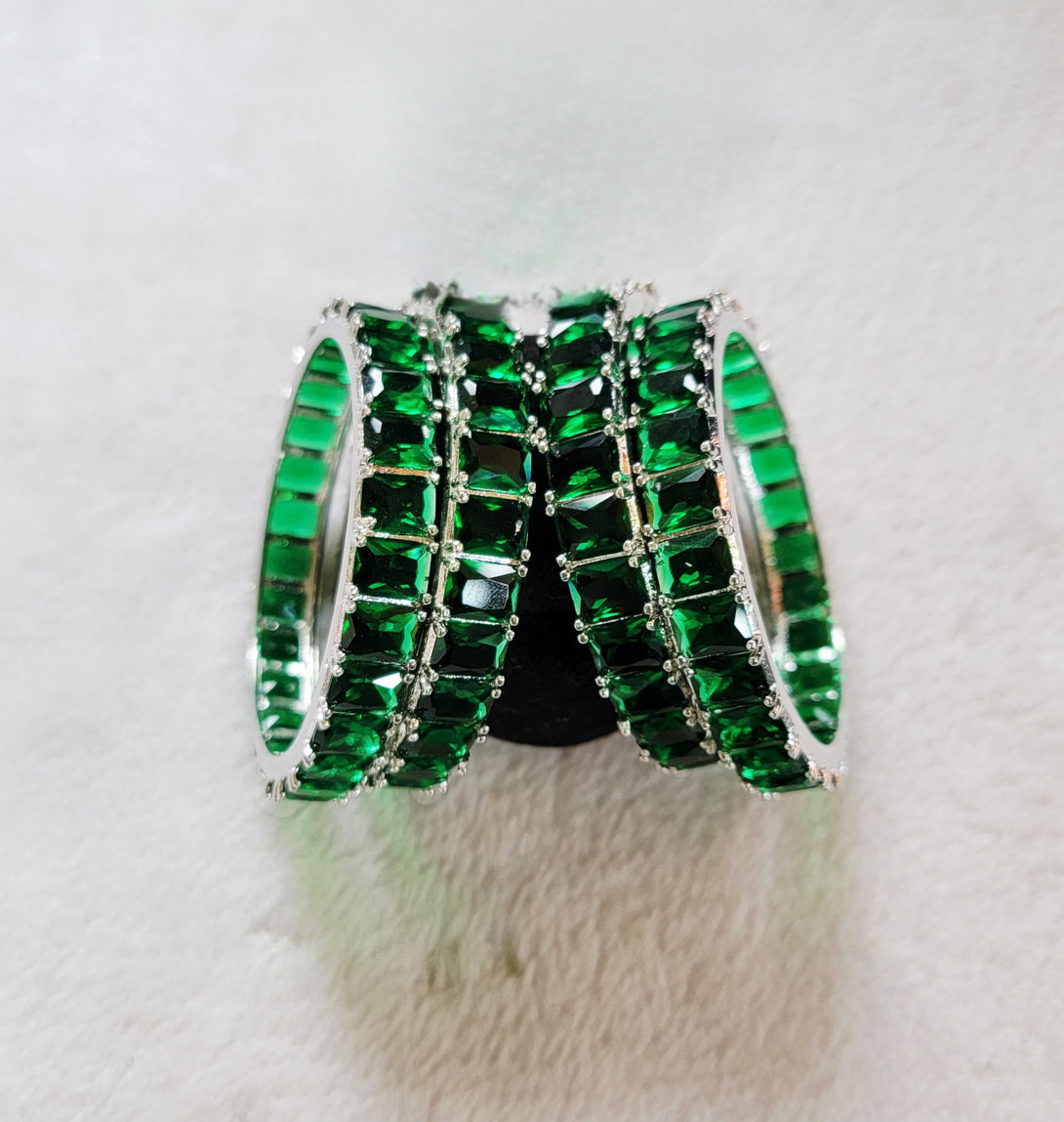 Elegant bangles embellished with radiant green stones, offering a perfect balance of modern charm and timeless sophistication.