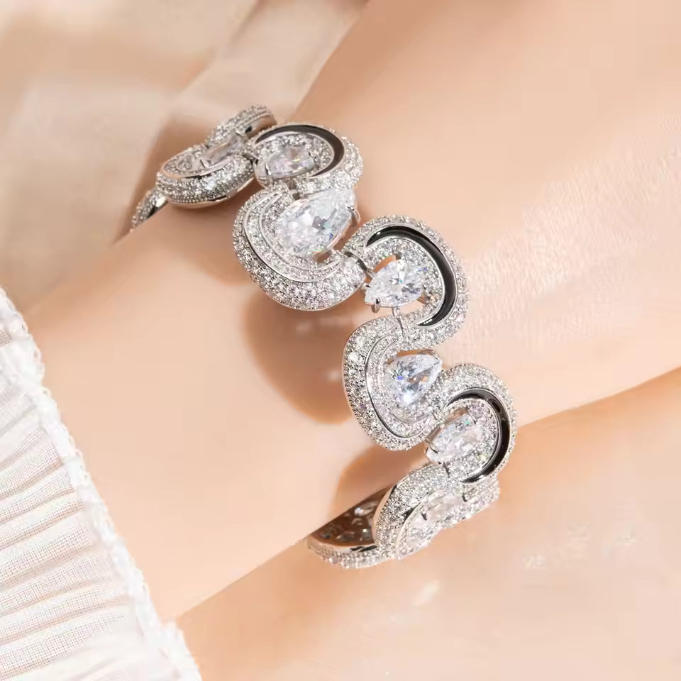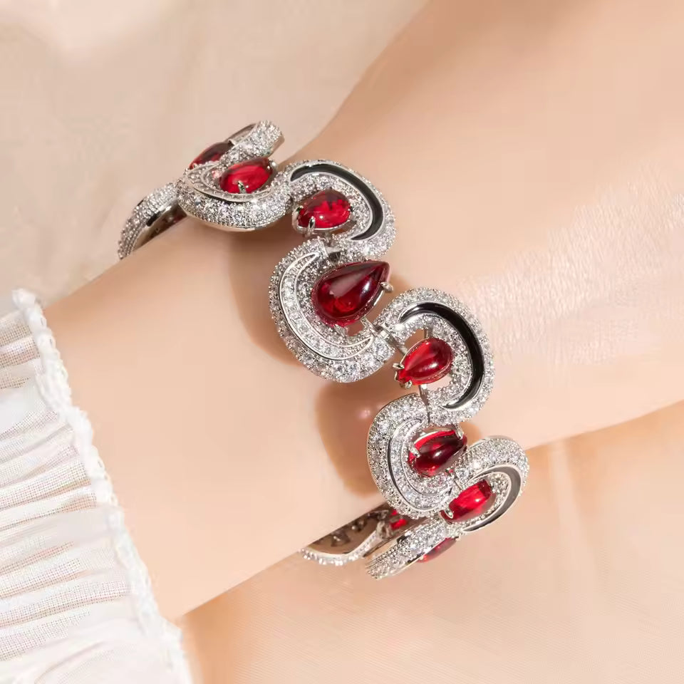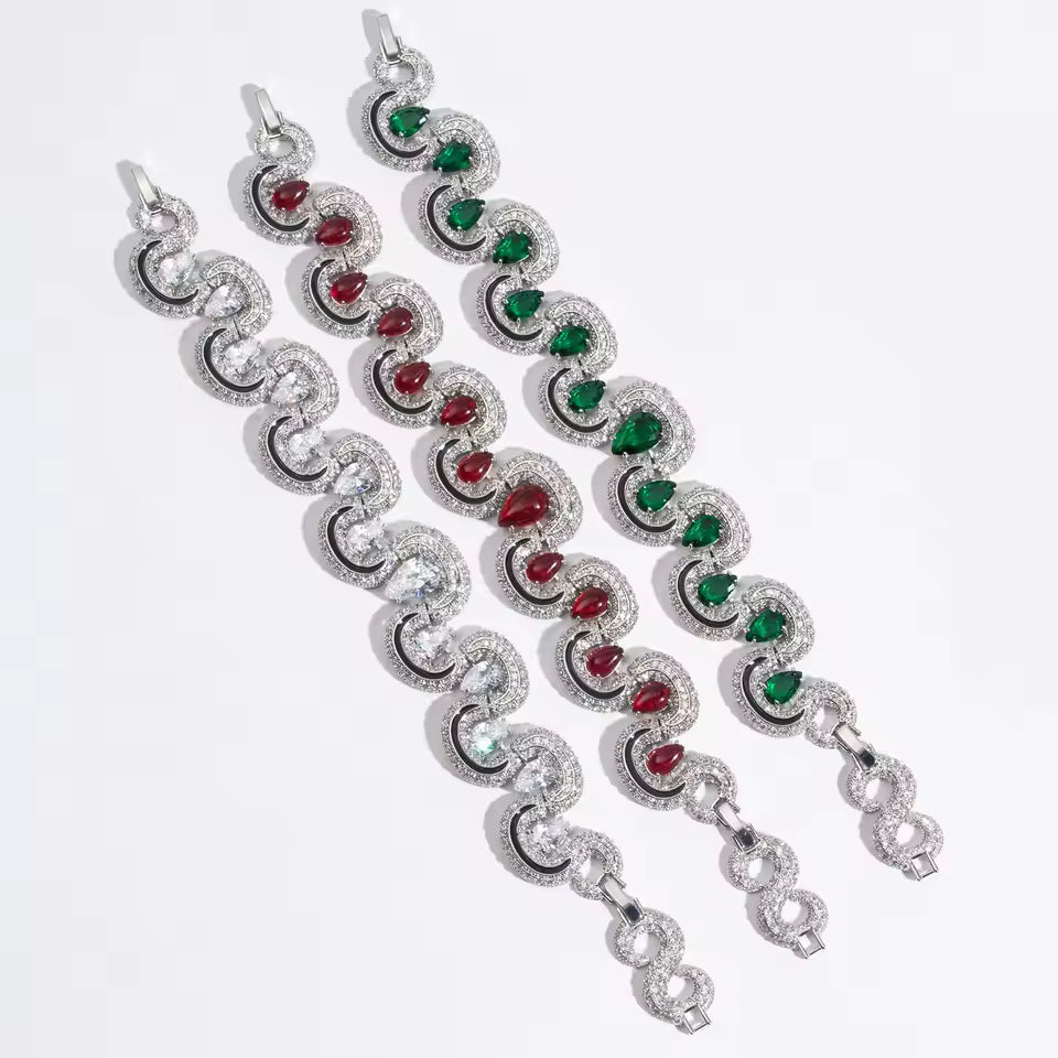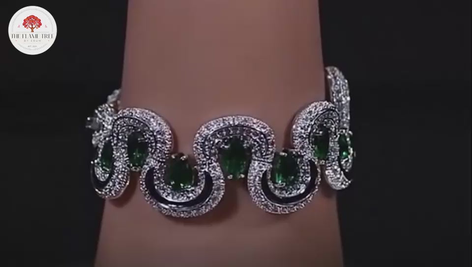 Emerald-green pear stones set in infinity links, finished in luxe silver tone for a smooth, comfortable drape—elegant, eye-catching, and evening ready.