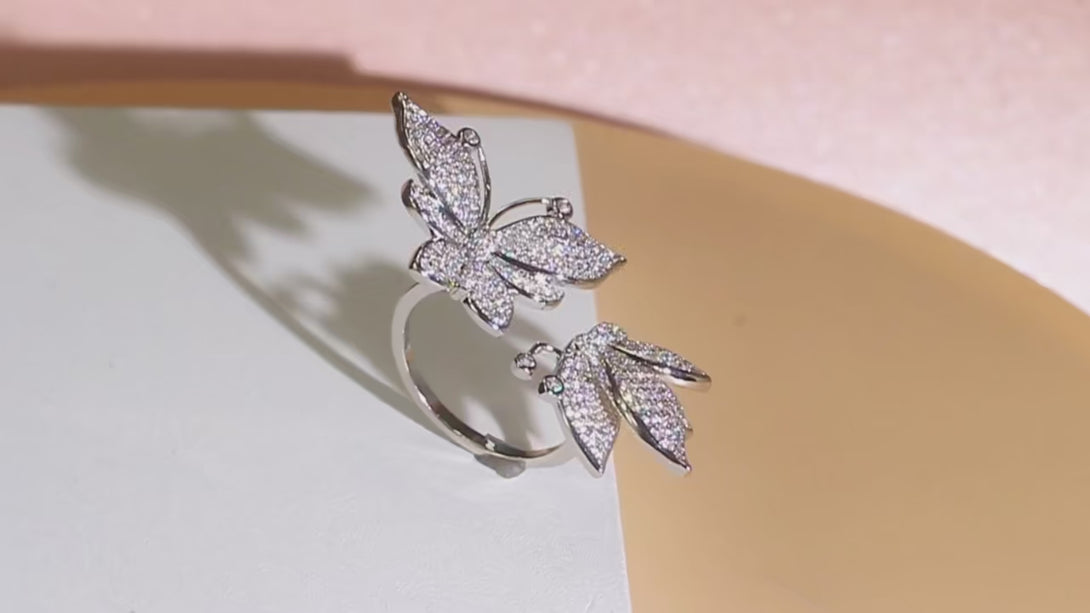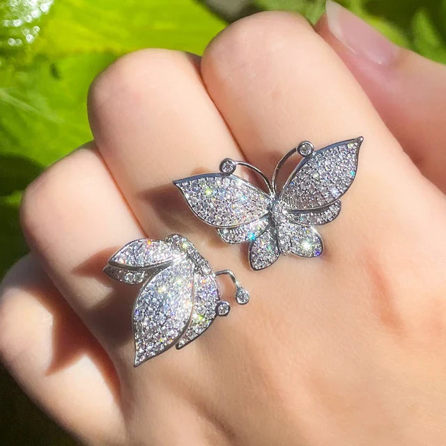 High quality fully zircon Beautiful butterfly adjustable ring.