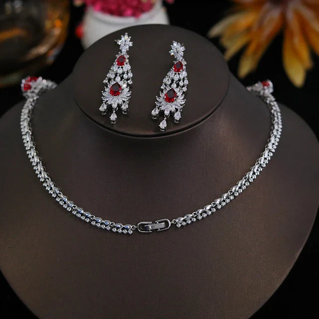 Vintage jewelry set perfect for weddings and parties. Includes necklace, earrings. Intricate and very finely embedded Zircon looking like real diamonds. Long lasting.