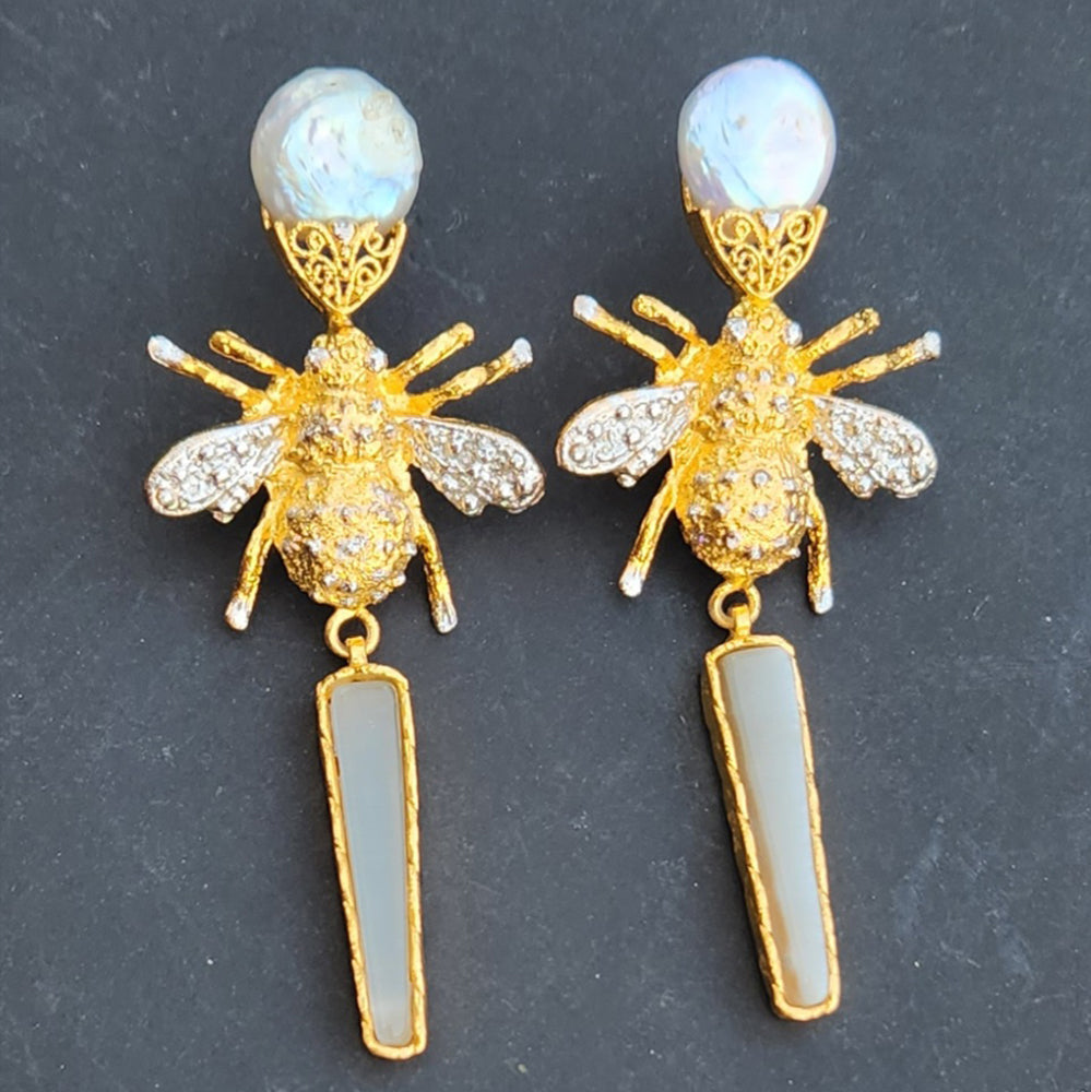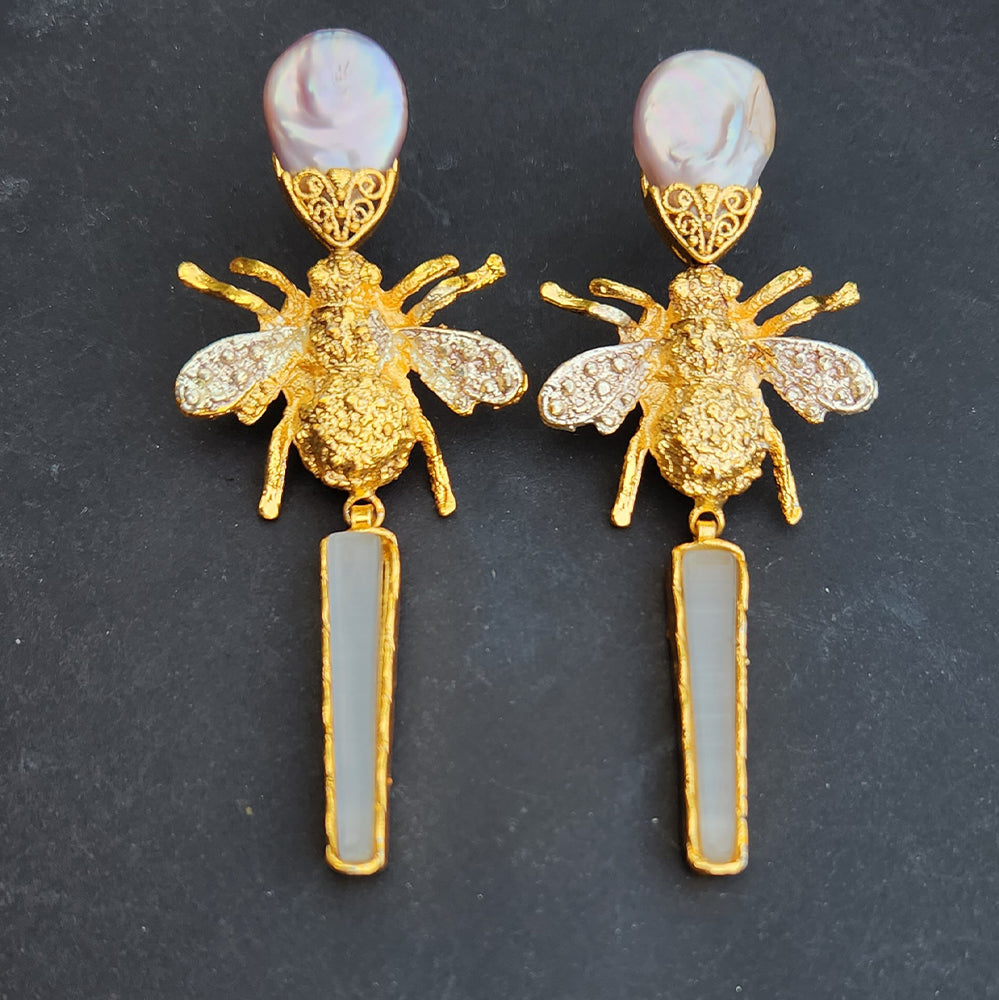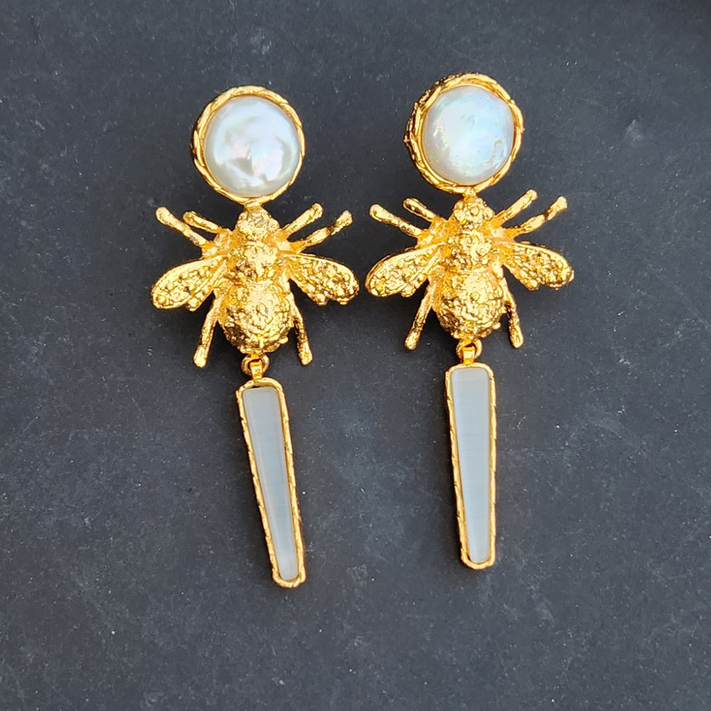 High quality earrings with embedded real mother of pearls. earrings has 18k gold polish