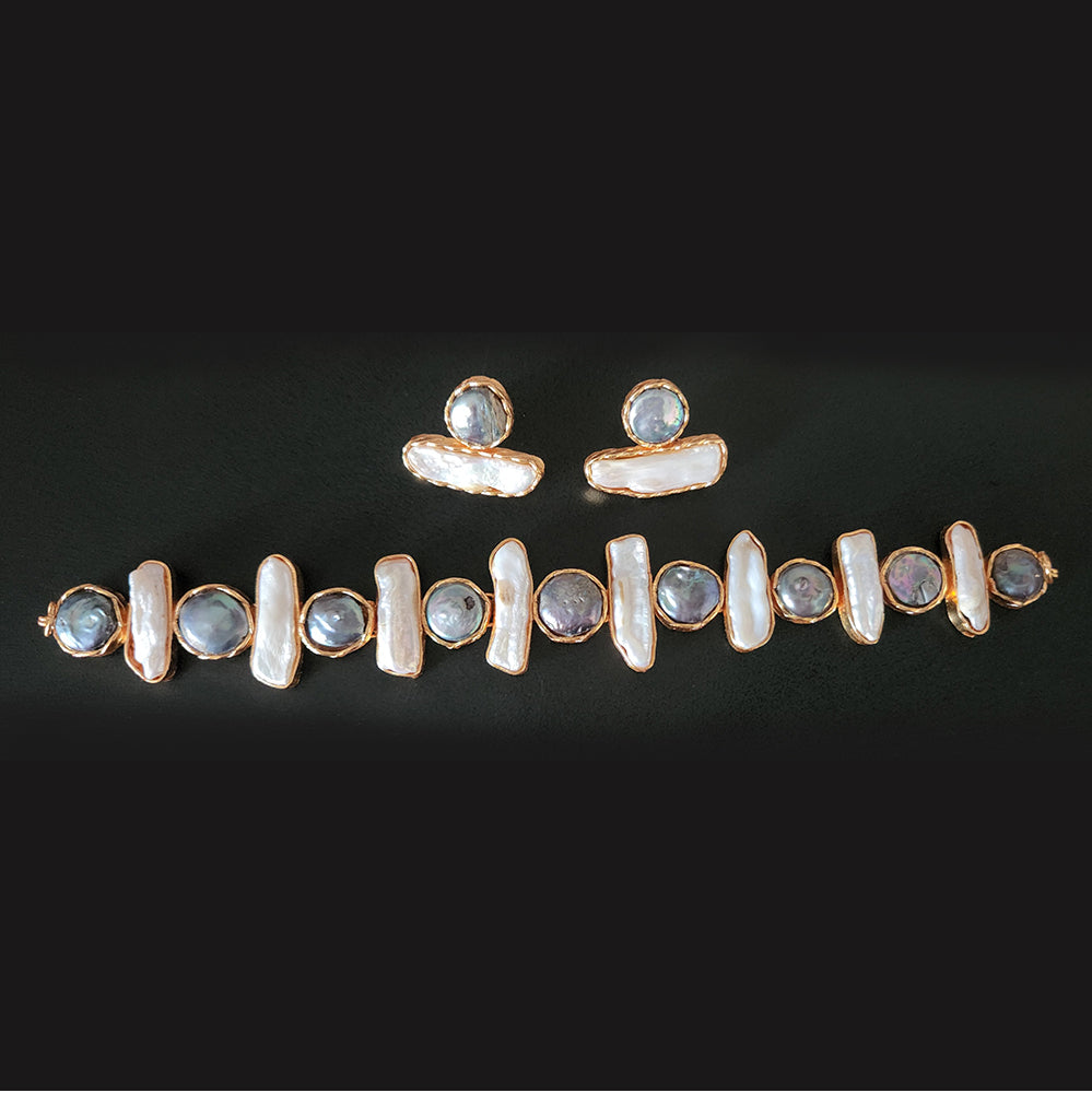 High quality choker set with embedded real grey mother of pearls. choker set has 18k gold polish