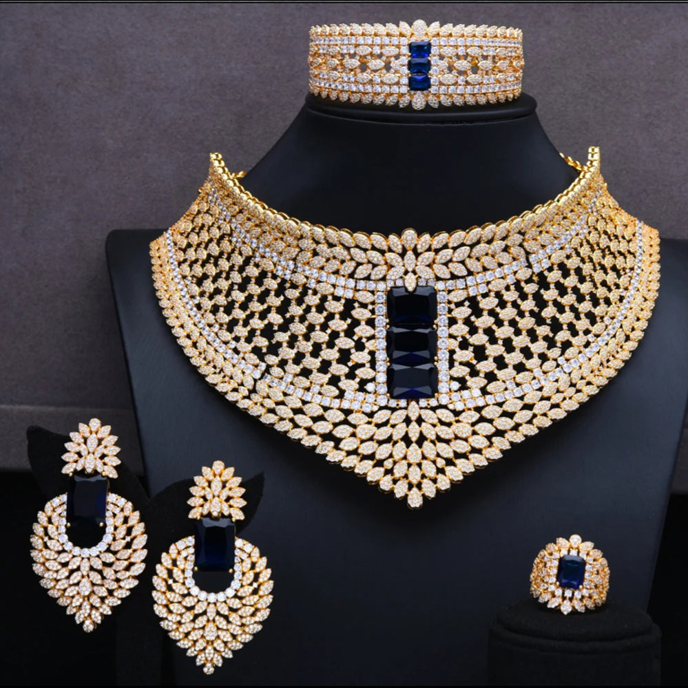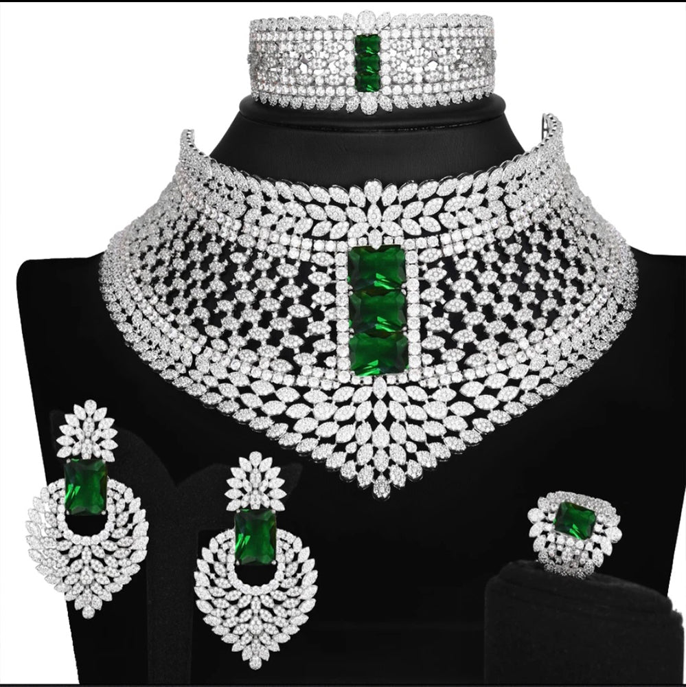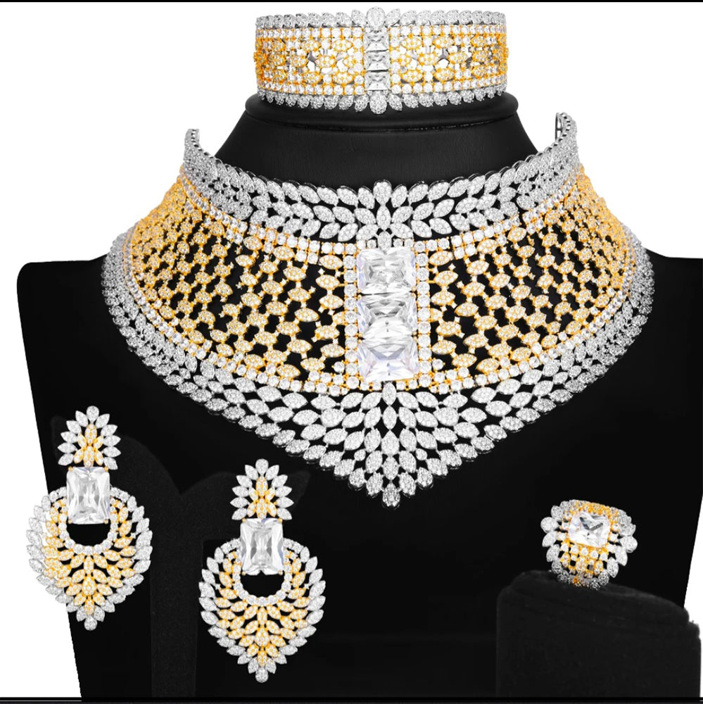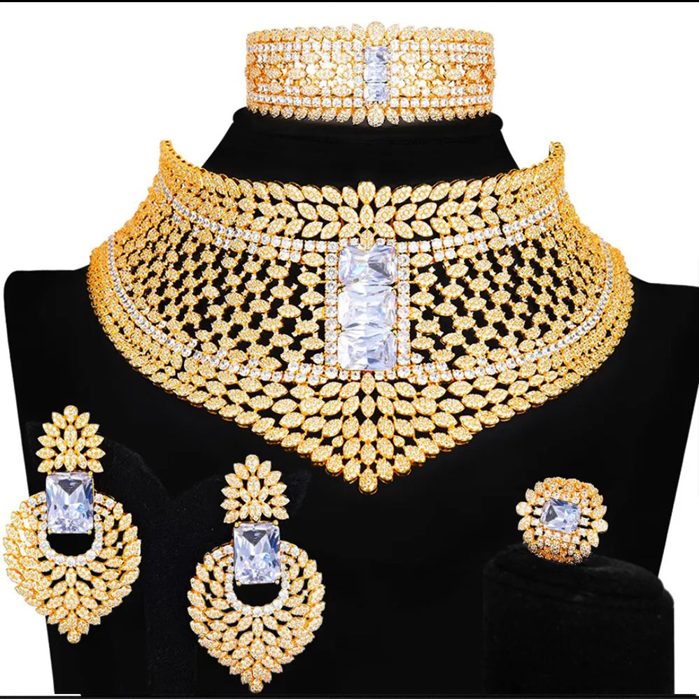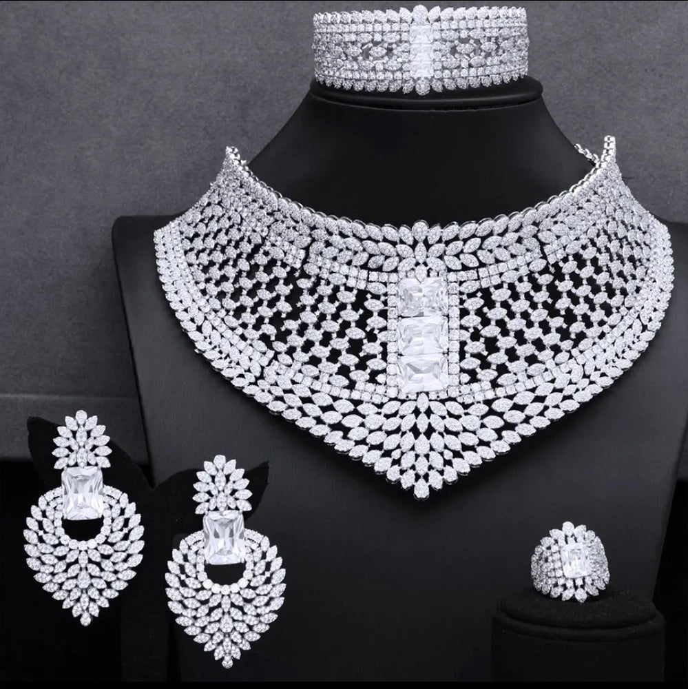 Choker set for weddings and parties. Beautiful clear white zircon give a most elegant look. Includes bracelet, earrings, ring, necklace.