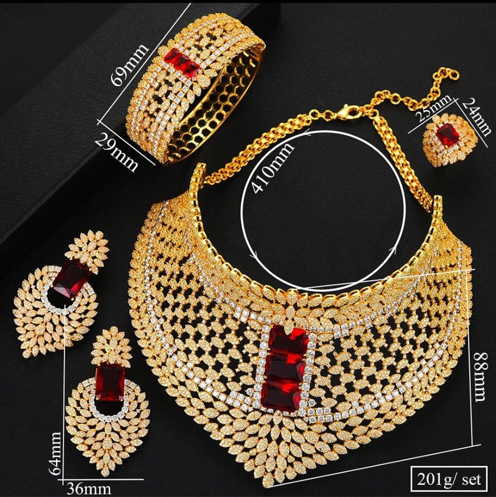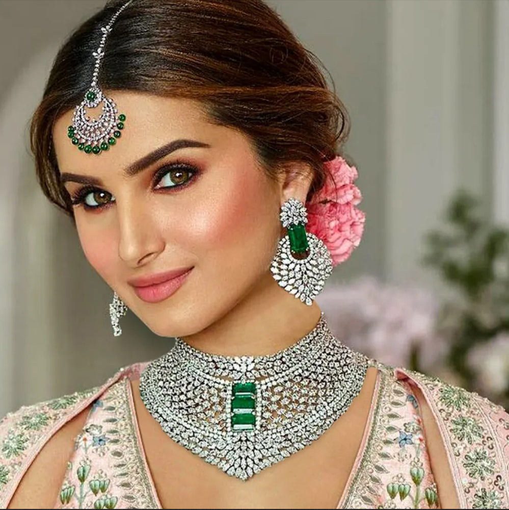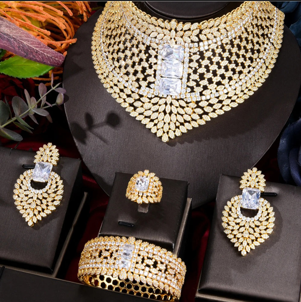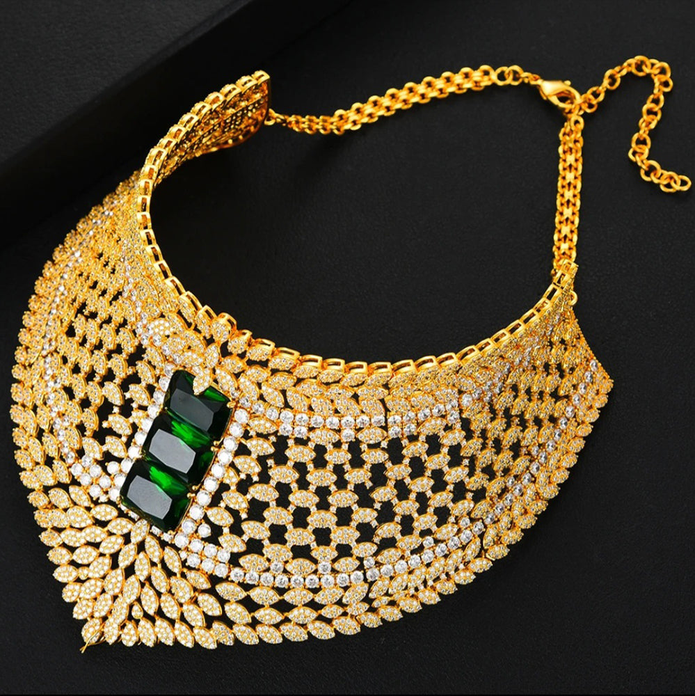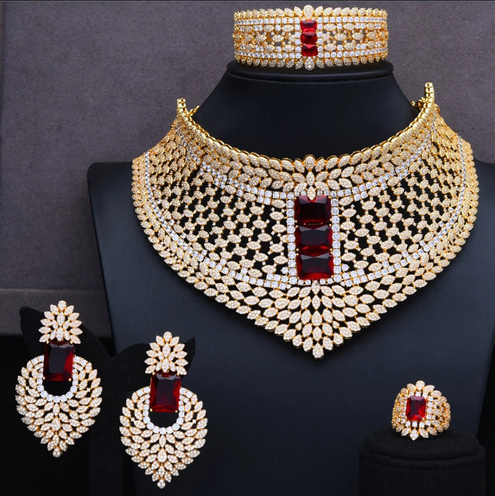 Choker set for weddings and parties. Beautiful clear white zircon give a most elegant look. Includes bracelet, earrings, ring, necklace.