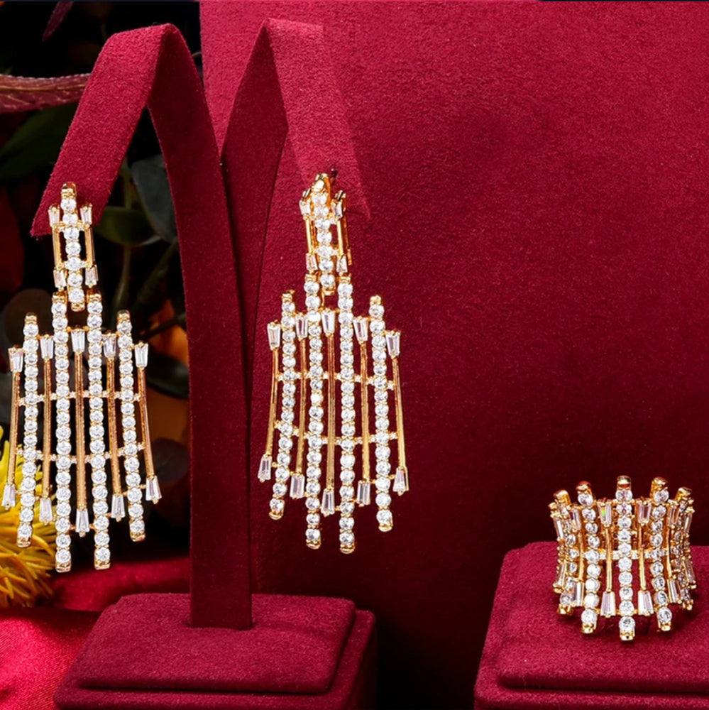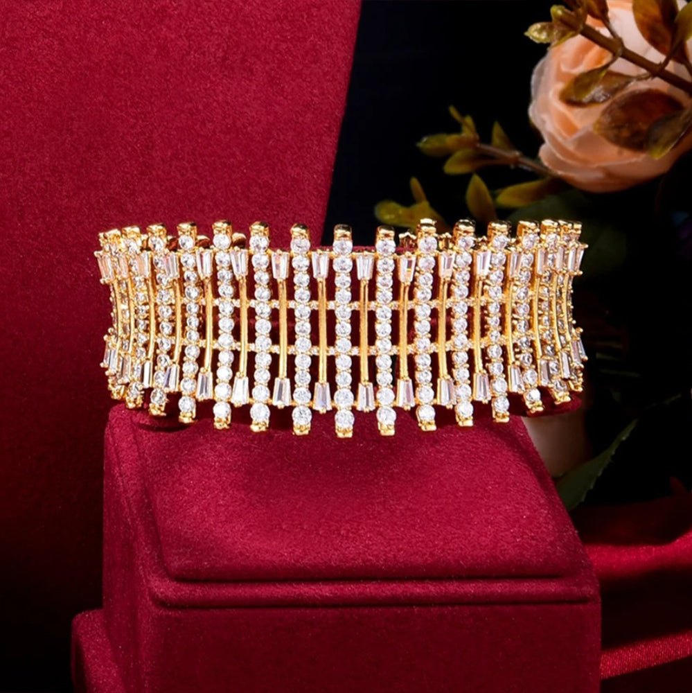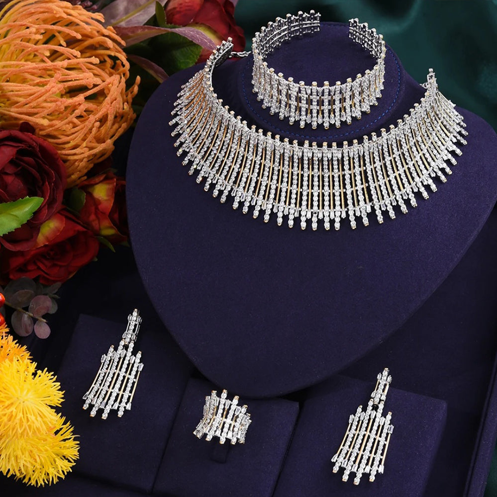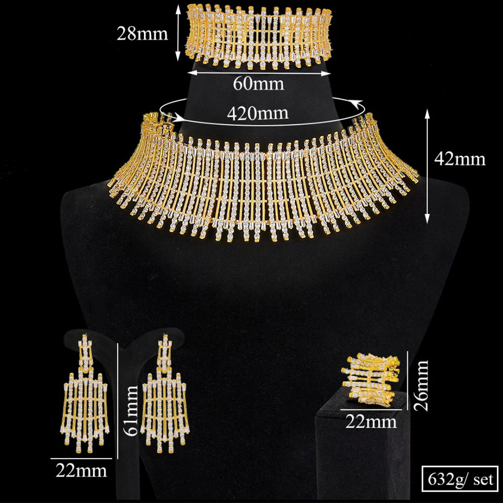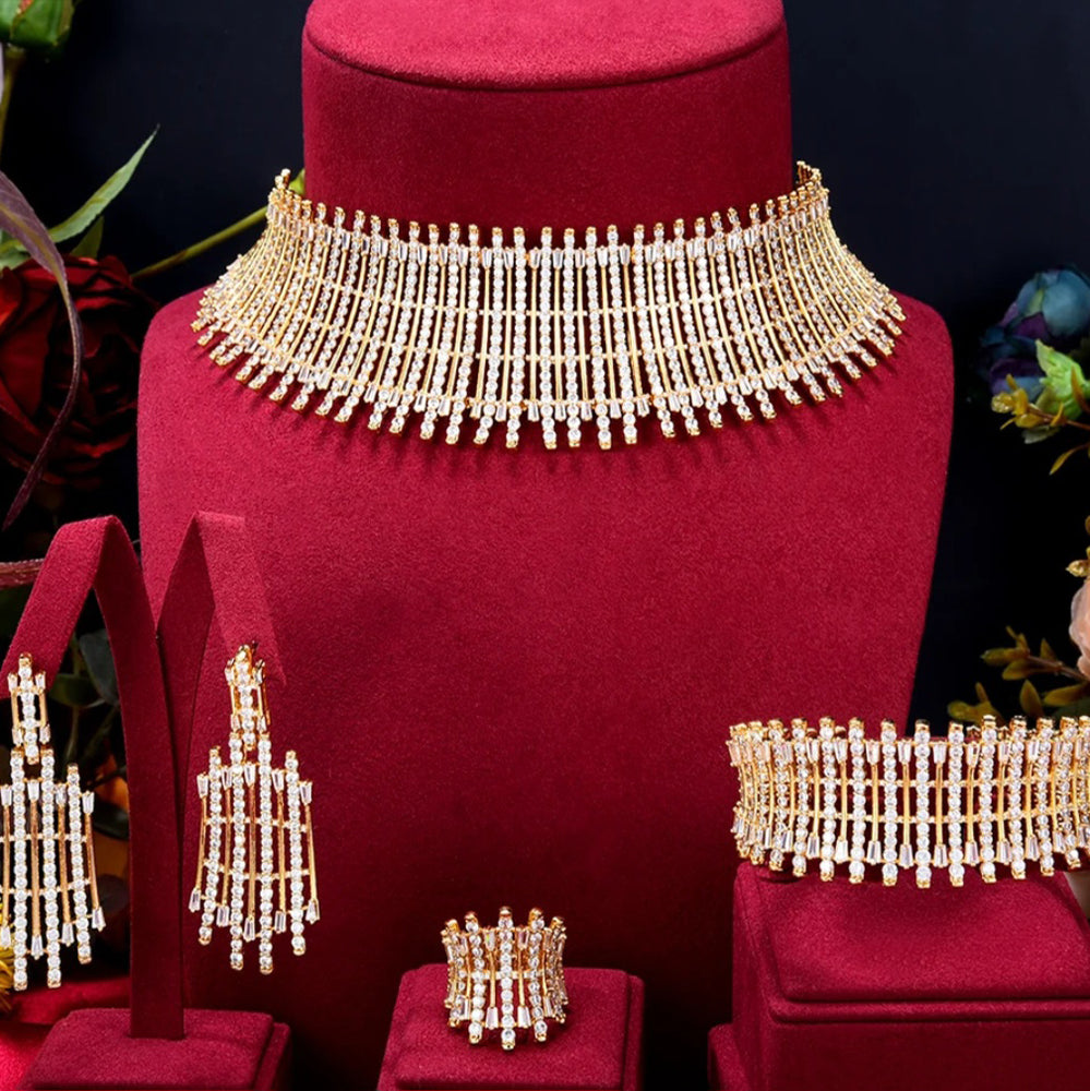 Choker set for weddings and parties. Beautiful clear white zircon gives a most elegant look. Includes bracelet, earrings, ring, necklace.