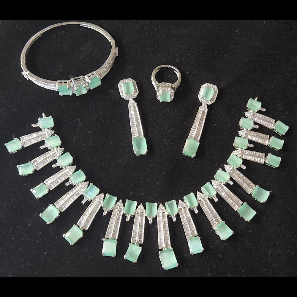High quality AD zircon with glass Stone earrings and ring and bracelet and necklace